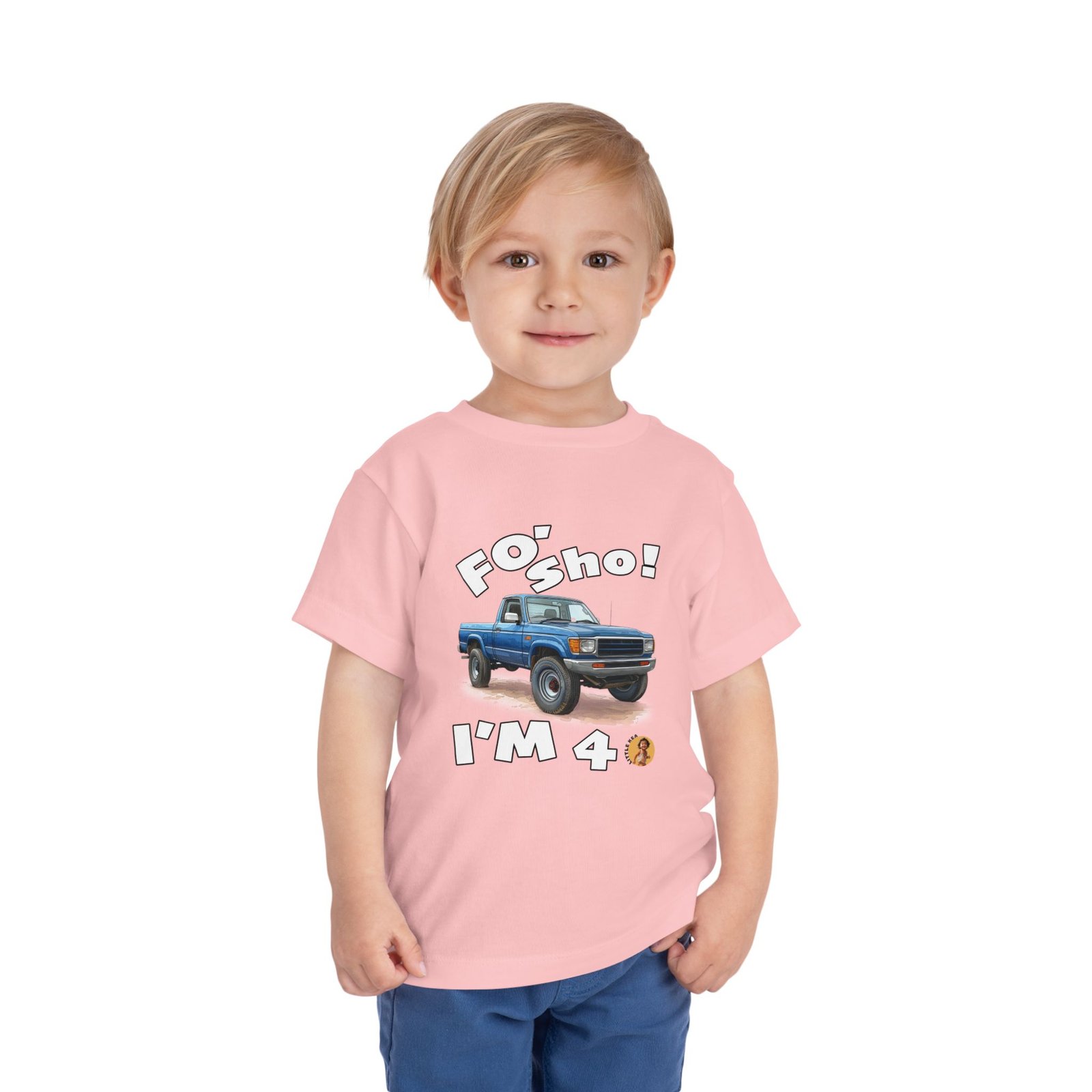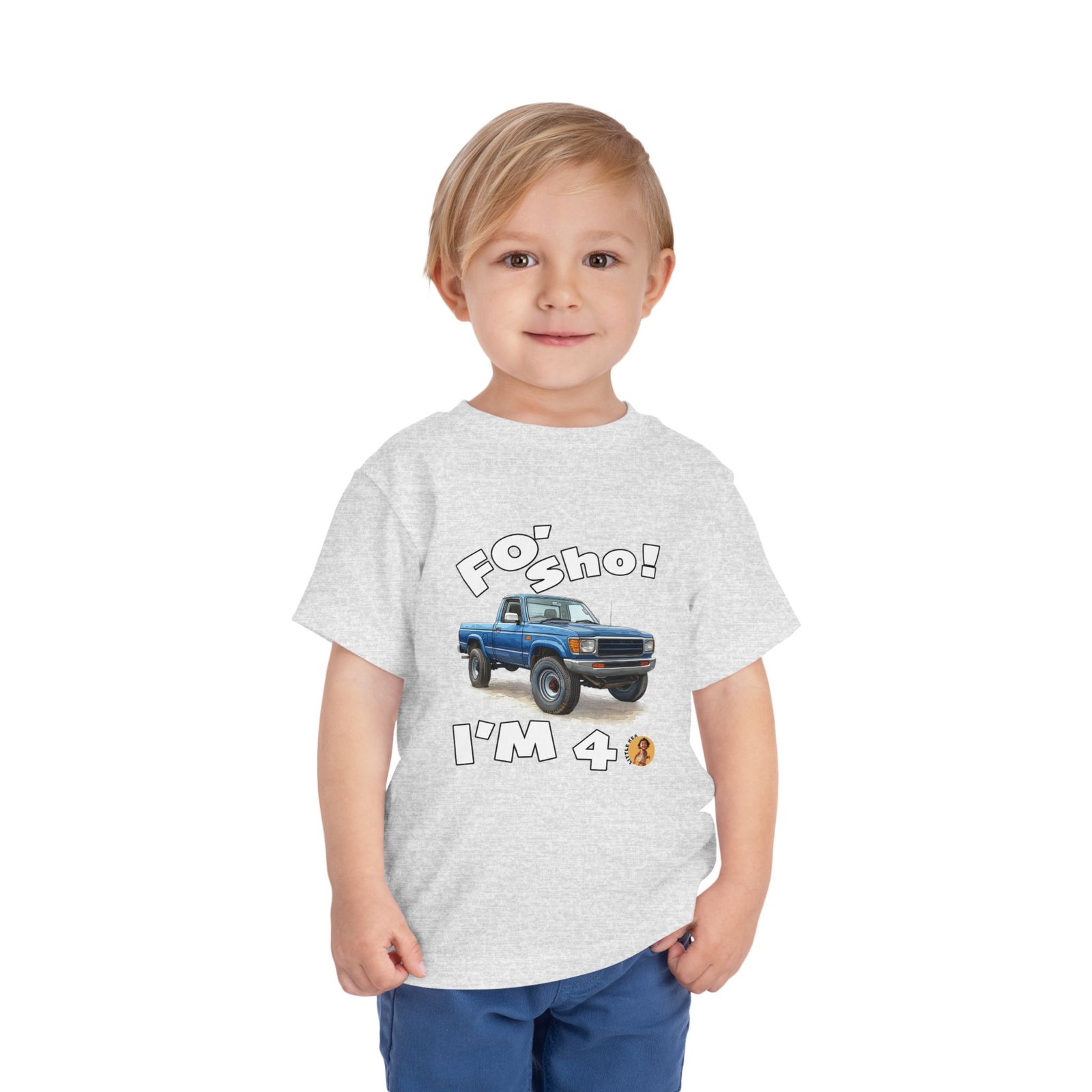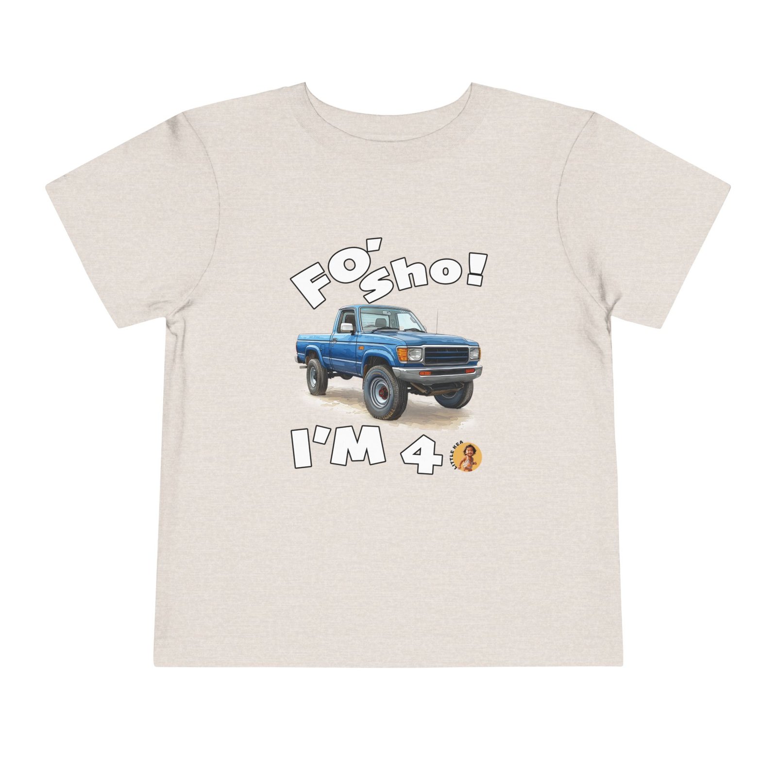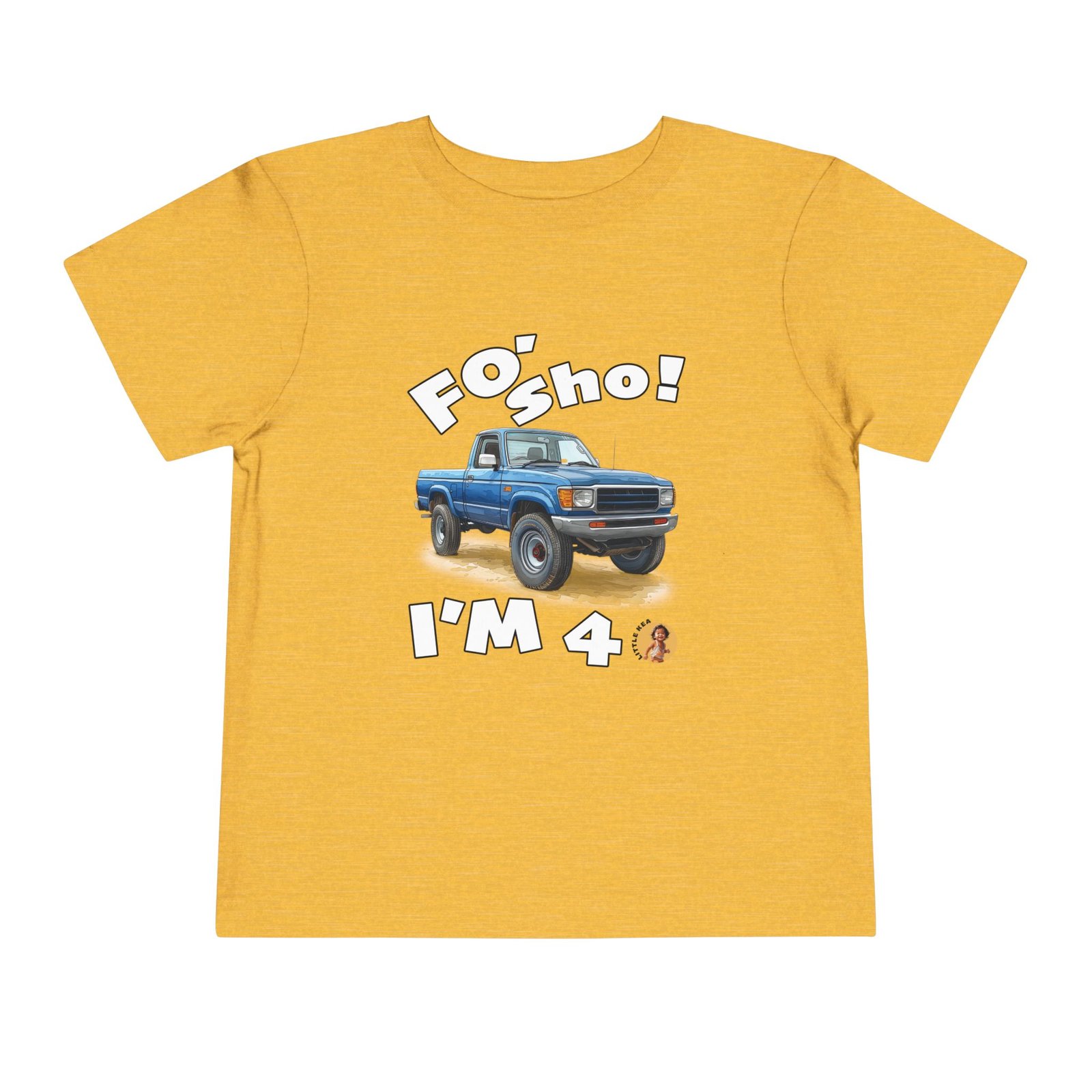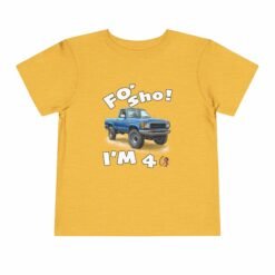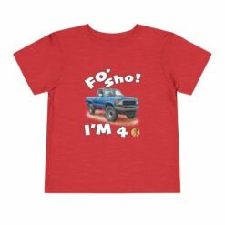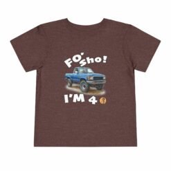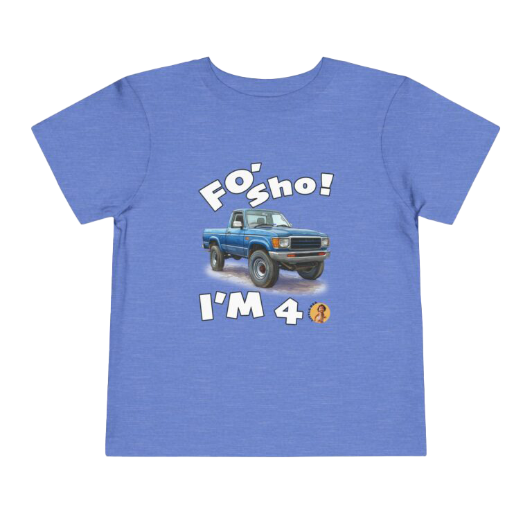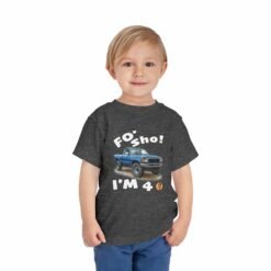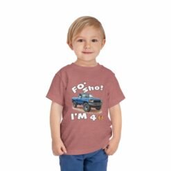 Celebrate your little one’s big milestone with our fun and vibrant ‘Foʻ Sho! I’m 4’ toddler t-shirt! Perfect for all keiki, this tee features a playful blue truck graphic alongside the shout, ‘Foʻ Sho!’ Whether you’re throwing a birthday luau or enjoying everyday adventures, this comfy shirt is designed for active island kids with big energy. A must-have for your three-year-old’s wardrobe!